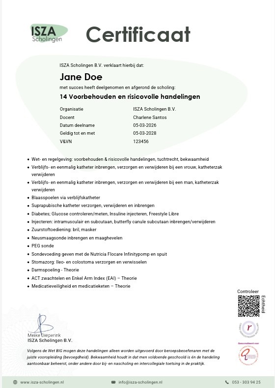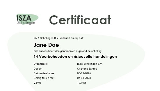 Bij ISZA Scholingen vinden we het belangrijk dat scholing niet alleen goed wordt gegeven, maar ook duidelijk en betrouwbaar wordt vastgelegd. Daarom hebben we ons certificaat vernieuwd. Het certificaat heeft een nieuwe lay-out én een handige toevoeging: